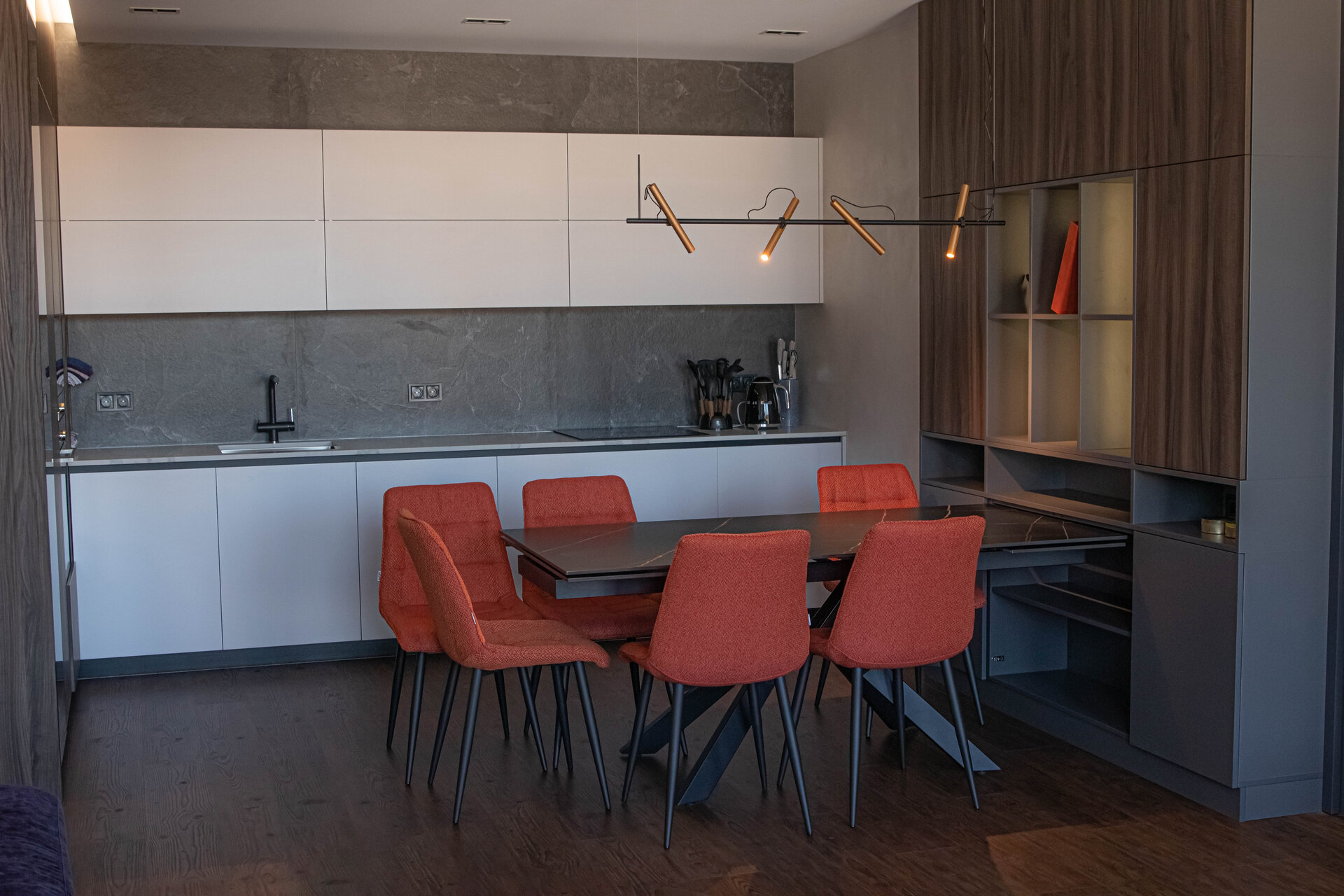 Із задоволенням представлю інформацію про наш проект у житловому комплексі “Фестивальний”. Наша команда розпочала з глибокого аналізу особливостей даного комплексу та уважного вивчення потреб майбутніх мешканців. Наша мета полягала у створенні унікальних інтер’єрів, що відповідають найвищим стандартам комфорту та естетики. Ми не тільки уважно вислухали побажання наших клієнтів, але й приділили особливу увагу кожній деталі дизайну, починаючи від яскравих кольорів і закінчуючи підбором ідеальних меблів. Затишна квартира з сучасною кухнею та вітальнею – Ця квартира уособлює сучасність та комфорт.